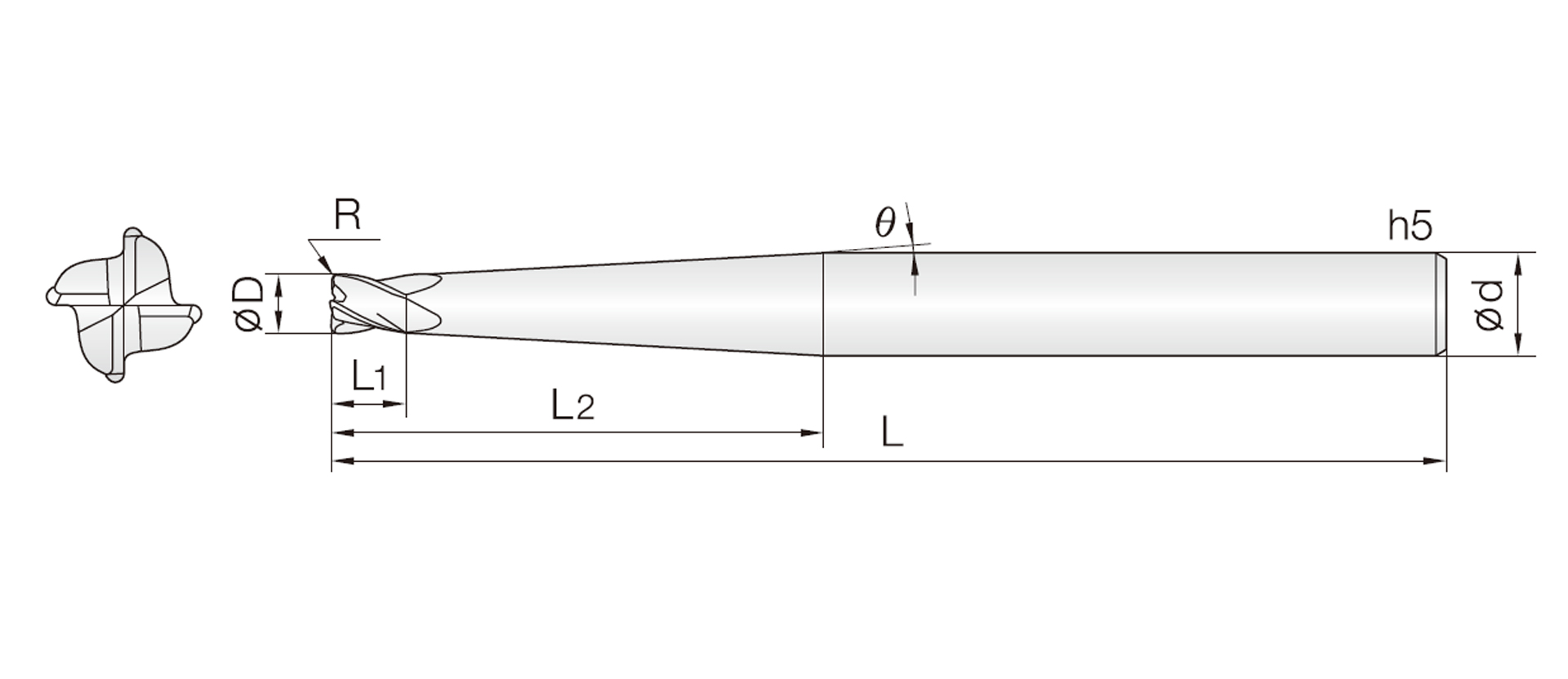 | Image | Part No. | Specifications | Flutes | OD R X D | Length of Cut L1 | Effective Length Leff (mm) | Overall Length L (mm) | Shank Diameter Ds (mm) | Price | Add to Cart | |